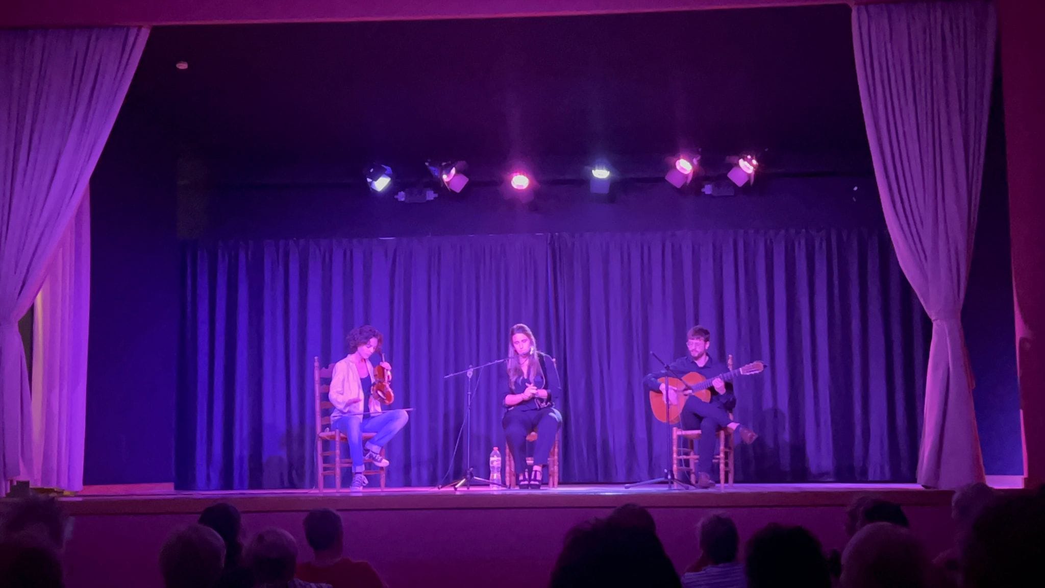 La sonoridad del violín de Sílvia aporta una dimensión melódica y evocadora que dialoga orgánicamente con el cante profundo de Sonia y la reconocible guitarra flamenca de David, convirtiendo al instrumento en el puente entre tradición e innovación.